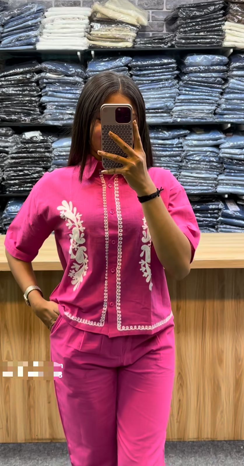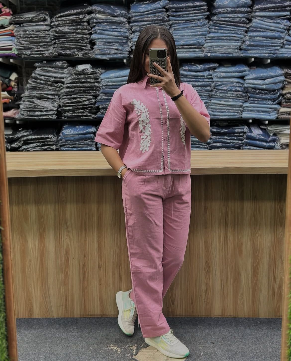 Elevate your casual wardrobe with this stylish embroidered co-ord set, a perfect blend of comfort and elegance.